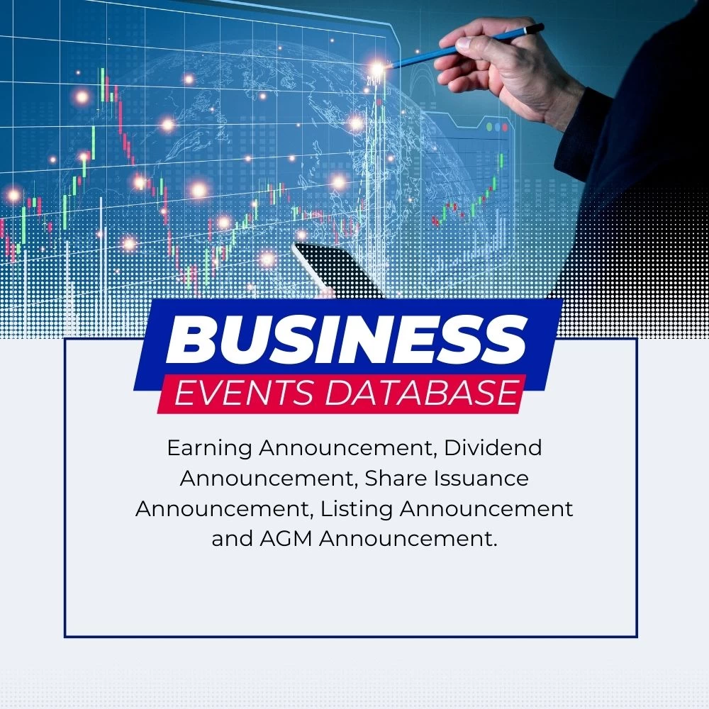 Tổng hợp thông tin sự kiện doanh nghiệp niêm yết ở cả ba sàn từ năm 2001 đến nay (bao gồm cả doanh nghiệp đã hủy niêm yết). Các sự kiện phổ biến như thông báo lợi nhuận, thông báo cổ tức, thông báo phát hành cổ phiếu, thông báo niêm yết và thông báo đại hội cổ đông thường niên. Đây là nguồn dữ liệu hữu ích trong các phân tích sử dụng phương pháp nghiên cứu sự kiện, đánh giá tác động của các loại sự kiện đến lợi suất đầu tư hoặc nghiên cứu về các vấn đề ESOP, tunneling hay propping đến giá trị và hiệu quả hoạt động của doanh nghiệp.