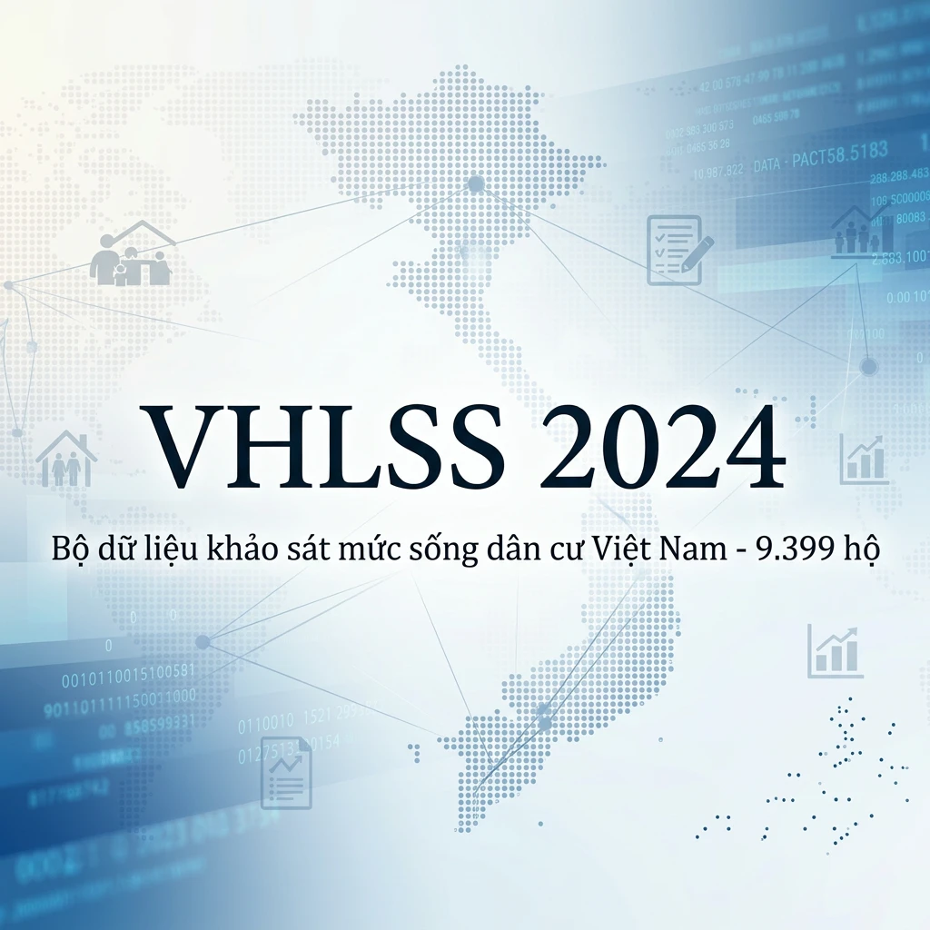 VHLSS 2024 - Bộ dữ liệu khảo sát mức sống dân cư Việt Nam 2024 (bộ 9.399 hộ) là bộ vi dữ liệu thu nhập - chi tiêu chuyên sâu, cập nhật nhất cho năm khảo sát 2024, được xây dựng từ Khảo sát mức sống dân cư Việt Nam do cơ quan thống kê nhà nước triển khai trên phạm vi toàn quốc. Đây là lựa chọn đặc biệt phù hợp cho học viên cao học, giảng viên và các nhà nghiên cứu đang cần một bộ dữ liệu chính thức, có độ tin cậy cao và đủ chiều sâu để thực hiện luận văn, bài báo khoa học, đề tài nghiên cứu và các phân tích chính sách dựa trên bằng chứng.